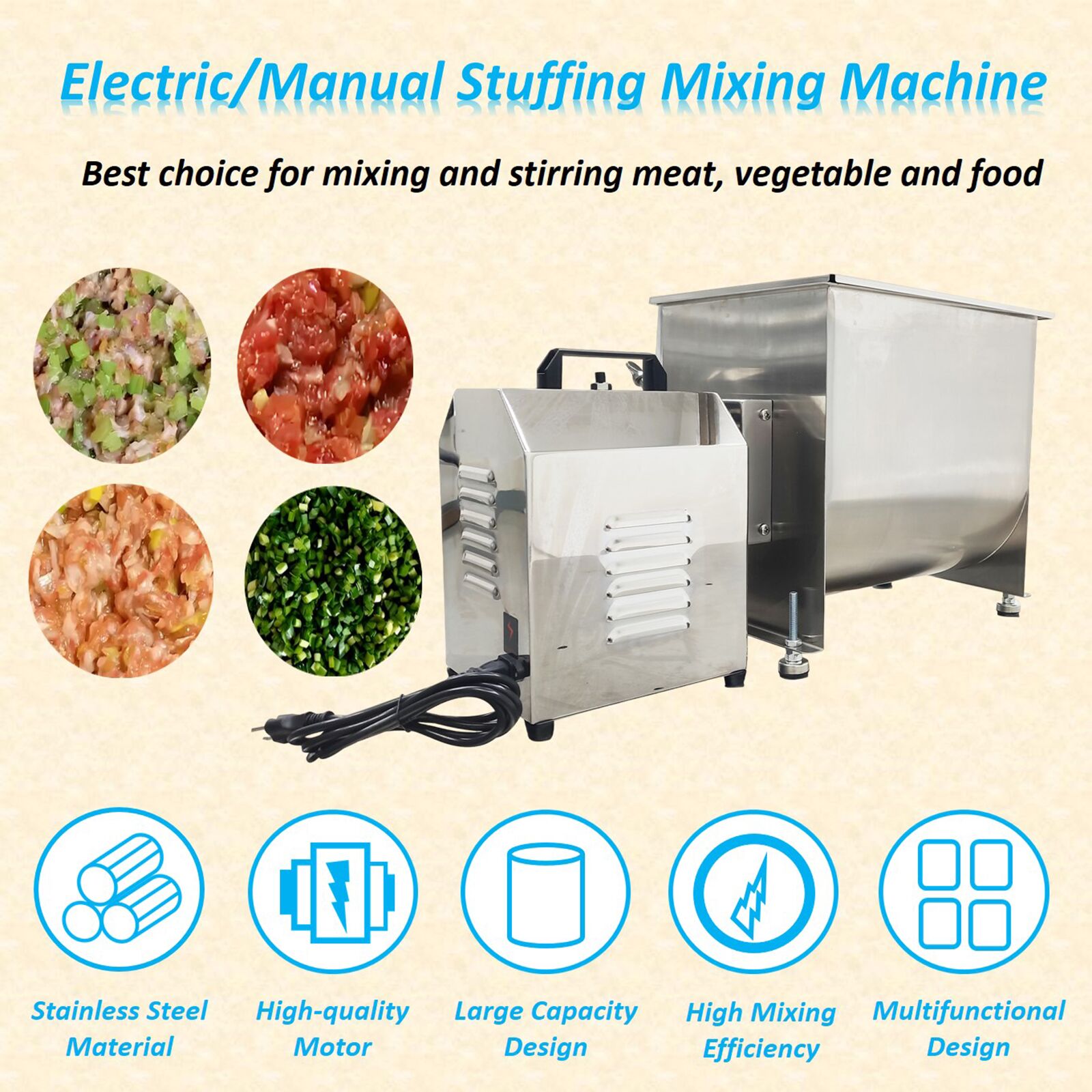 1 x Electric/Manual Dual-purpose Stainless Steel Stuffing Mixer 110V |